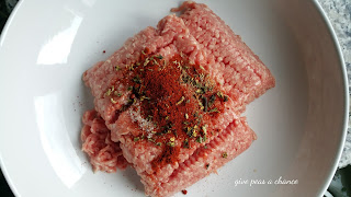 - Combine the meat with spices.
